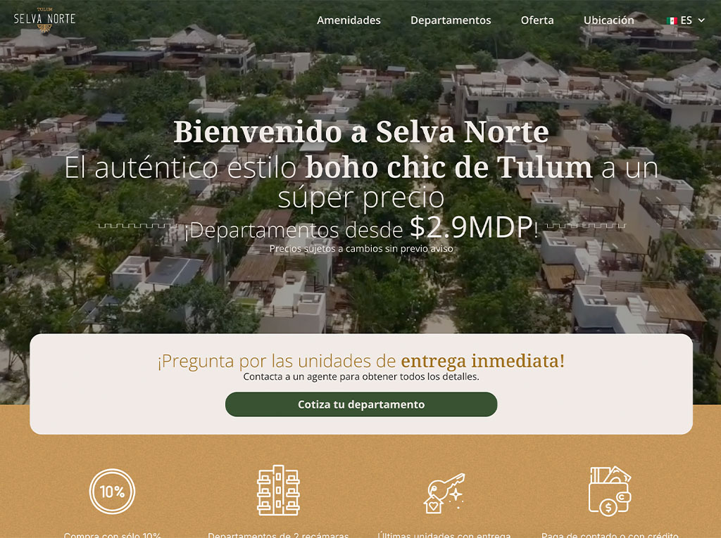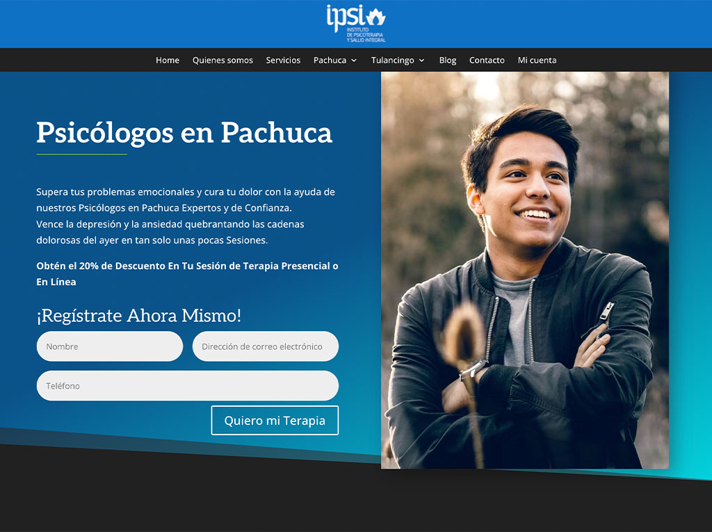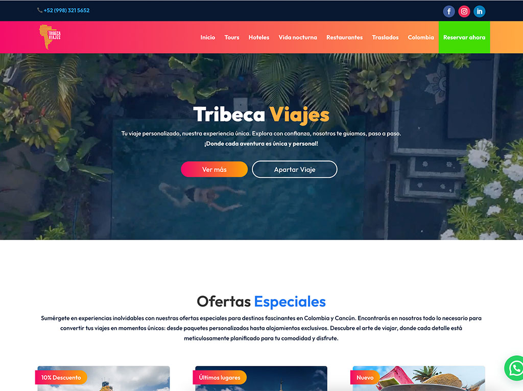 Implementación en WordPress con HTML/CSS a medida, optimización SEO técnica y configuración de analíticas.